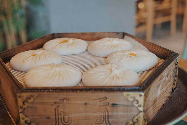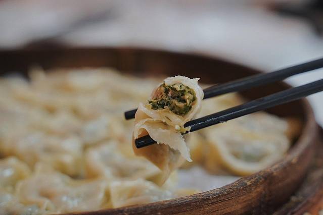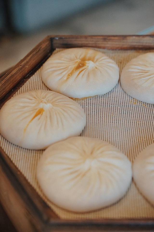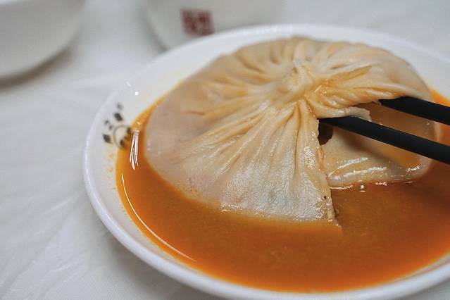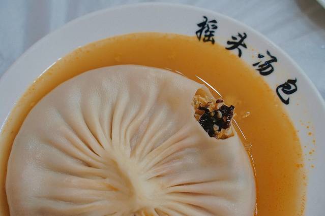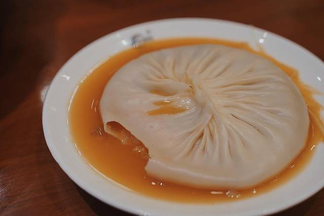 单是看着那一个个憨态可掬的白胖子,许是面皮偏硬粘合度不够,头顶还冒出金灿灿的油,就觉得格外可爱。逐个抓入单独的盘中,再按次序一个一个消灭掉,“规矩”在吃汤包的过程中必不可少。吃的速度慢了,身旁的阿姨比我们还要着急“快吃呀!冷了可就不好吃了!”