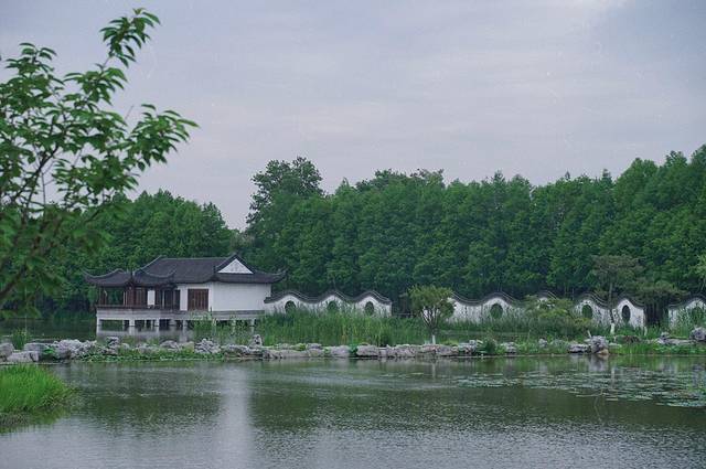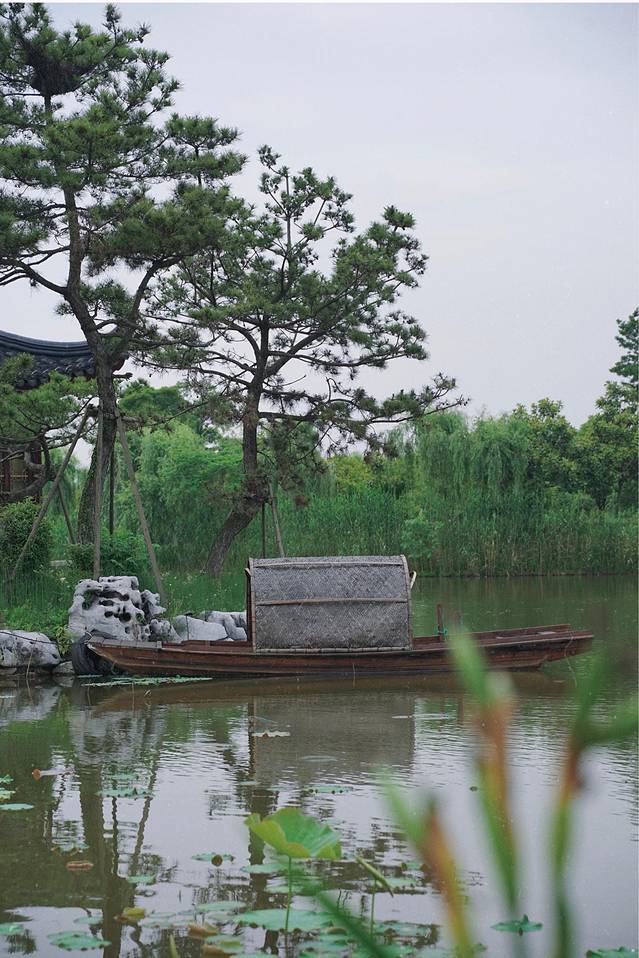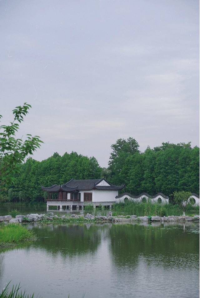 园中黛瓦白墙、碧湖绿树,徜徉于其中,移步换景、处处皆是匠心的体现。目光所及之处,都是一副中式园林景致。