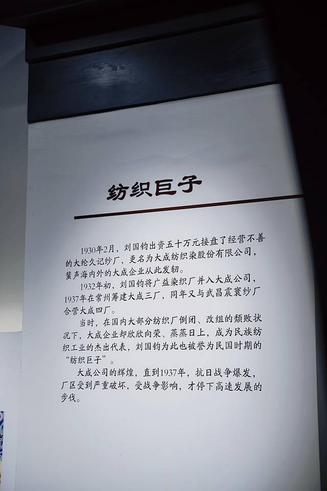刘国钧先生事迹展览厅内,讲述了从一个从奔牛镇的学徒到富商,然后再从富商到一个敢于与日商竞争的民族工业骄子,再成长为爱国爱社会主义的江苏省副省长的故事。饮水思源,他也有自己丰富的阅历和崇高的精神,回馈着这片他深爱着的土地。