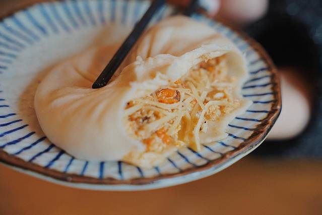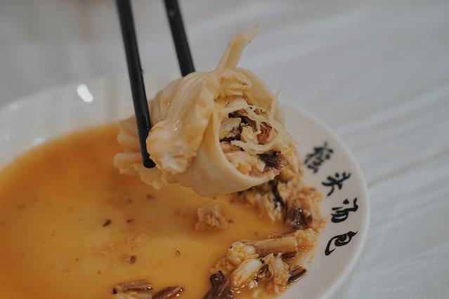 几只汤包下来,突然突然奇想把汤包的“天棚”整个打开,发现这家汤包店真的诚意满满,只看蟹黄的分量就觉得不虚此行了。
