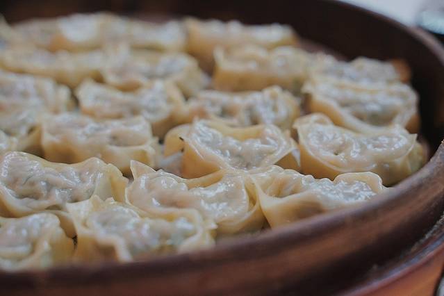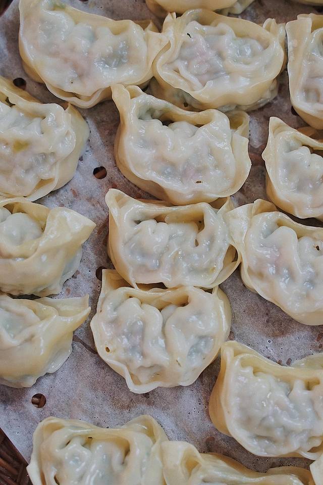 最为独出心裁的,还是像包子和蒸饺一样的蒸馄饨。整颗的元包馄饨放入笼屉内蒸熟,没有了过多的水汽,使得外皮更加晶莹剔透,仿佛一眼就能整个看透。整过之后的馄饨皮韧性更足,口感更加劲道,像吃饺子一样地直接将馄饨蘸着醋吃,也是每天清晨的大满足!