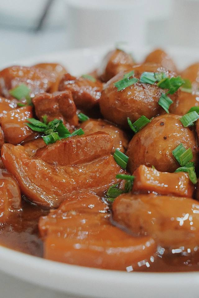 芋头烧肉选用的是靖江地产的香沙芋,淀粉含量高,也更加沙糯适口。这种芋头,细细品时能品的到一种类似于板栗的香气,也被称为“芋中板栗”。与大块的猪肉同烧,也成就了一道让人停不下来的下饭美味。