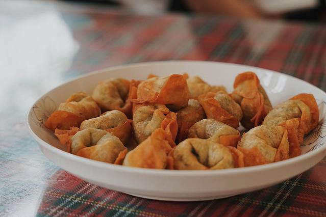 吃腻了千篇一律的煮馄饨,当地人还发明了煎馄饨。同样的馄饨,经过高温油后色泽金黄,外脆里嫩,香酥的口感让人忍不住回味。