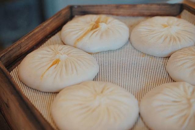色泽雪白、嚼劲十足,一个个白白胖胖的馒头上被点上了象征美好寓意的红点,是过年时家家户户必备,馒头发的越好,象征着第二年的生活越要“发”。饱满的雪菜馅或是萝卜丝馅,入口之后那种带着酒香的回甘,让人格外着迷。