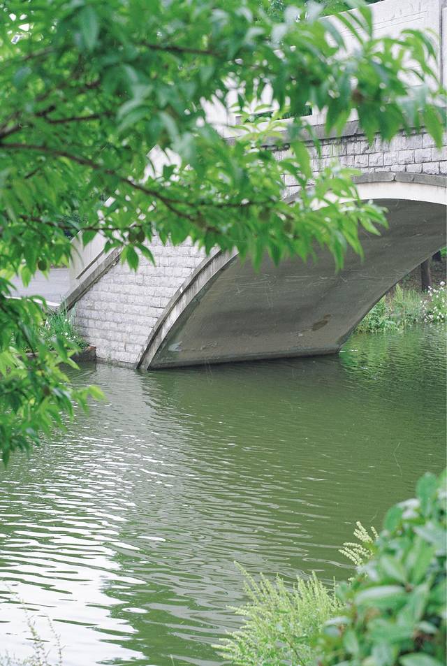 湖水在微风吹拂下泛起涟漪,桥在水间映,鱼在树里游,人在湖边走,“水”在这里的景致中得到了淋漓尽致的发挥。碧绿的水面上,亭台楼阁、假山盆景、绿树小桥的倒影悉数呈现,在盈盈碧水间映出一片岁月静好。