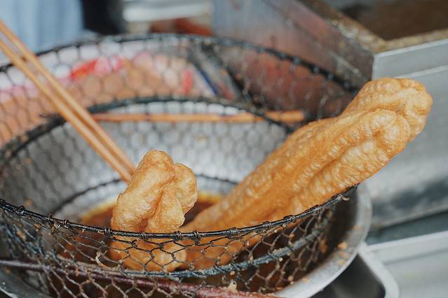 幸运地得到当地人的推荐,我住的酒店对面那条小街里,有家靖江低调的“美食王者”——高家美食。每天早上大排长龙却坚持不外卖,这种店总是让人忍不住去一探究竟。出门走过去不到3分钟,这条本该冷清的“夜宵一条街”上确实出现了一条不合时宜的排队队伍,队伍的尽头,是门口正在忙碌地炸油条和卷百叶卷的店主人两夫妻。