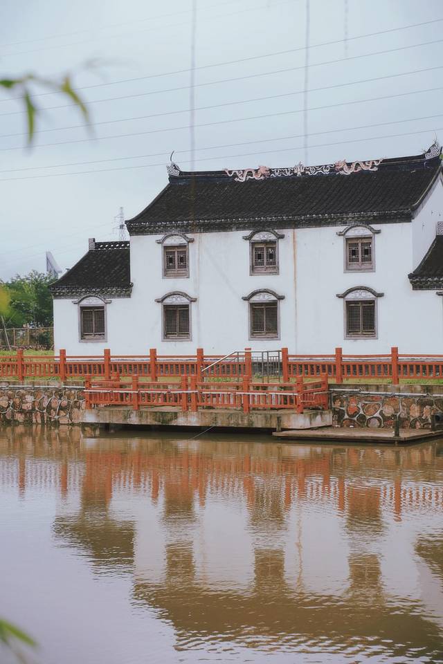 飞檐翘角、白墙黛瓦、精致的砖雕与古朴的木结构合为一体,这栋古色古香的建筑,在水中投射出迷人的倒影。