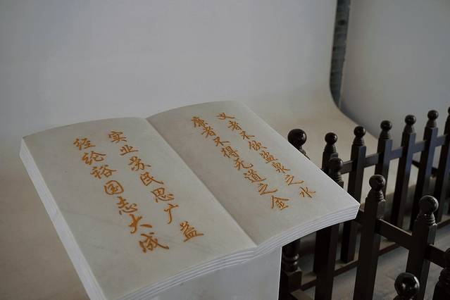 国钧堂正中,放置着重18吨,高3.5米的刘国钧先生汉白玉雕坐像,慈眉善目,温和友善,深深地注视着他终生思念热爱的这片故土。