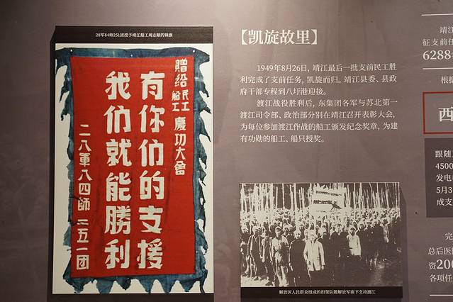 “当时靖江是苏北通往苏南的门户,如果从靖江渡江,江面也比较狭窄,容易渡江。从这边渡江成功,可以快速打到苏南。”历史选择了靖江,而靖江也没有辜负历史。当年江面上的纷飞战火,如今变为了忙碌来往的货船轮渡,长长的江岸线,便是这段辉煌岁月最好的见证。