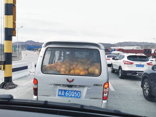 在乌鲁木齐检查站堵了半个小时.前面卖香瓜的车,快馋死我了