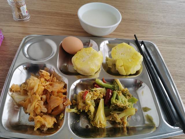 龙岭山庄早饭,8点开始,早饭那会正在下雨