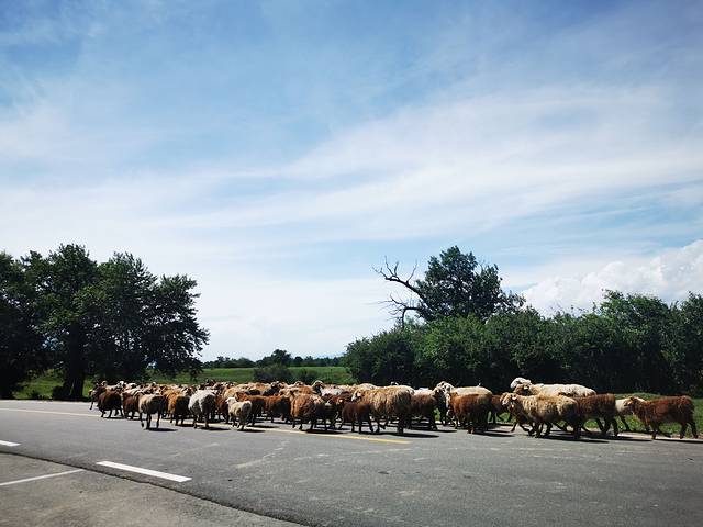 又遇到一个羊群,哈哈,大佬们让个路呀