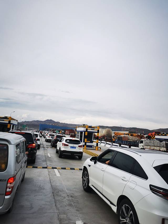 的堵车,现在还不是旅游高峰就这样了,要看行程码,验证身份证,测体温。