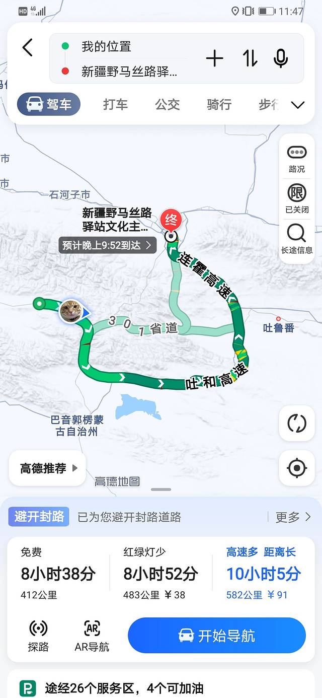 早上9.30从那拉提草原出发,走217国道到巴音布鲁克中午12.00到达