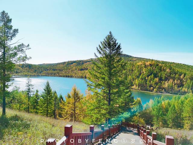 时而借助高高在上的天际,时而借助湖边黑色的岩石,时而借助泛黄的湖草,时而借助黄中带点绿的松树,每每这时候,你无法不感叹,自然的色彩搭配都是相辅相成的,毫无违和感,所以说,大自然才是上色高手!