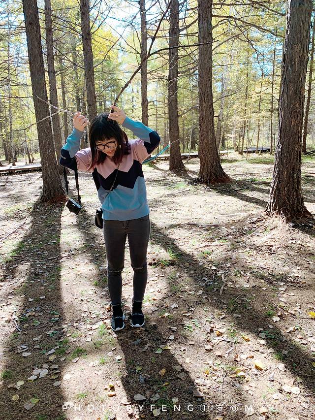 独自一人走在这木板路上,时不时抬头看看这个空中底下的松树🌲