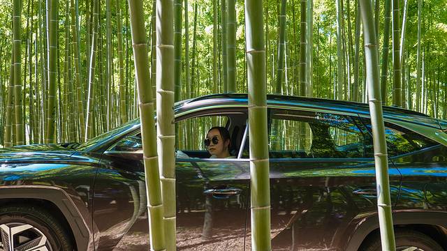 竹林也是拍照的好地方。把车开进竹林中的一条小路,就可以尽情的拍照了。