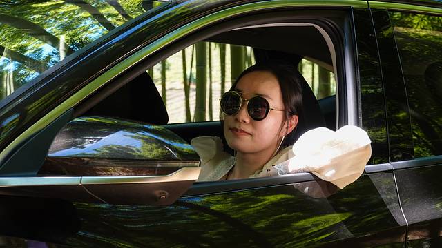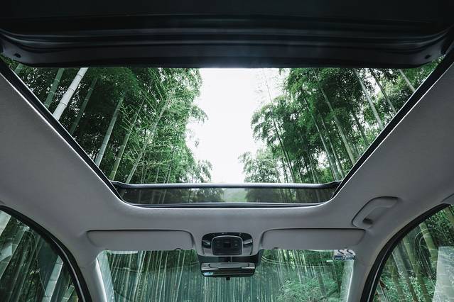 打开超大的天窗,人仿佛走进了竹林之间,初夏的燥热也消失殆尽,山里的气温确实比城市里低一些,浙北的山里适合避暑。