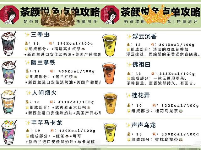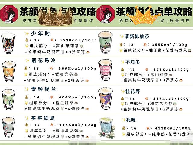 除了纯茶系列,芊芊马卡龙,以及清新韩柚茶这几款没试过,其它都试过,作为一个伪资深的吃货以及饮料深度中毒者的角度来说,忌廉系列会比奶泡沫系列,奶味重一点,甜度稍稍高点,其余就是茶香味不同;