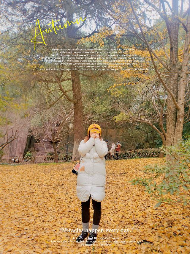 此时的银杏叶一半还坚挺的挂在树上,一半却已落于地面归于尘土。你知道的,银杏变黄是秋天的特色,虽没能看到“万山红遍,层林尽染”的壮美,但这遍地黄叶的晚秋初冬的美,无论如何是遇上的,能感受的,就是一种运气。“万山红遍,层林尽染”的岳麓山就留给下次的好运吧