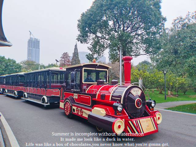 进橘子洲景区只需提前在APP或者小程序上预约,刷二维码就可以进区。若想找交通工具代步,可在入口处购买车票,车票分为游览车,小火车,或者包车,价格也是逐级递增,看个人的选择需求,购买除包车以外的交通方式,可凭票在景区内任一站点上下车。最热门的无非是带有可爱特征的小火车。