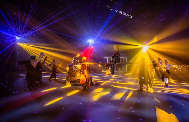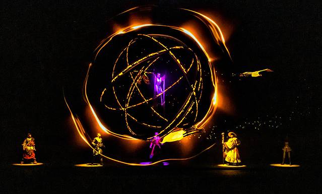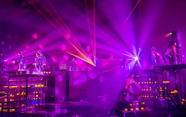 它采用了“浸没式+镜框式”的观演模式,形式新颖。观众观众入场后,将通过不同的观演路线被分流到3个独立的浸没体验空间(A、B、C空间),在此浸没感受15分钟的甘孜文化胜景后,将跟随演员进入主秀剧场空间,开启75分钟的奇幻冒险之旅。