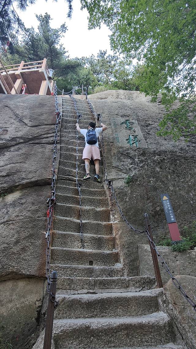 千尺幢是比较陡且长的一段台阶。推荐手脚并用完成,可以轻松一些。也有简单的路线选择,但既然来了华山,总要体验一些最精髓的部分嘛~这里只能算小试牛刀