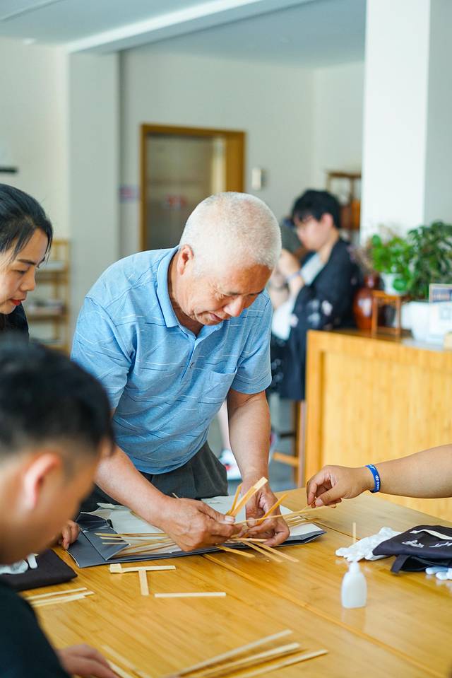 在老师傅的指导下,亲手体验了中国传统的竹编工艺。
