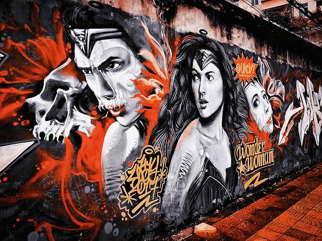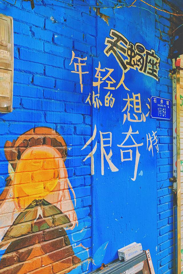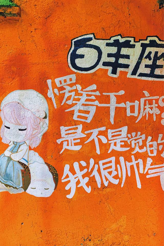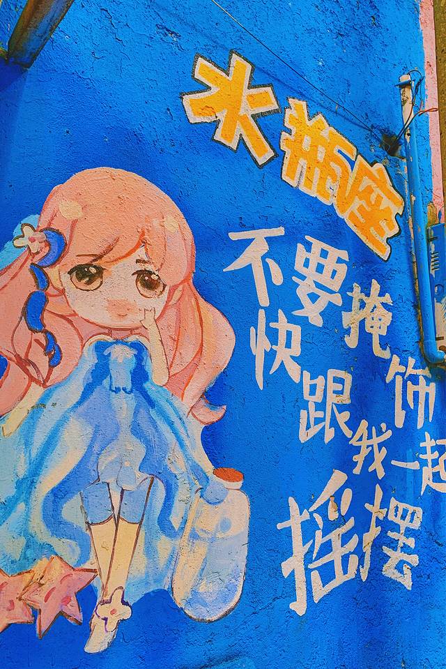 十二星座涂鸦,满足你的少女心,随手一拍都是大片。走到涂鸦街的尽头,可以看见从你的全世界路过的取景地。
