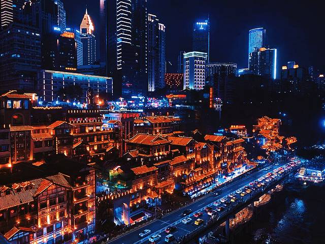 吃饭完就开始走进现实版的千与千寻了,洪崖洞作为 重庆 最网红的地方,人是真的多,想找个好的机位真的太难了。洪崖洞原名洪崖门,是古 重庆 城门之一,洪崖洞一共有11层,夜晚灯光从晚上6点开灯,10点熄灯。
