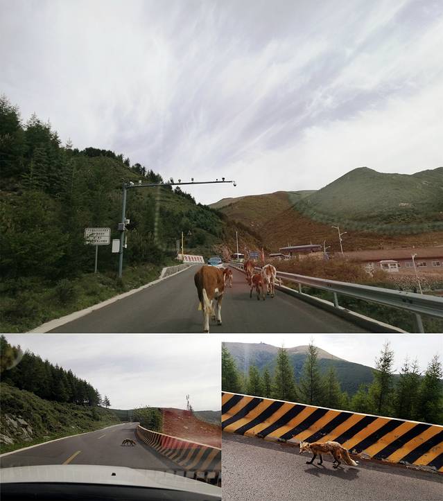 早九点从台怀镇出发,沿五台山风景区北线向北门行驶,九十九道弯的山路刺激又静美。偶遇一群群的大黄牛慢悠悠的走在路中间,或是一只只小狐狸在路边觅食。单车道行驶禁止停车,不得不按交通规定继续安全前行。