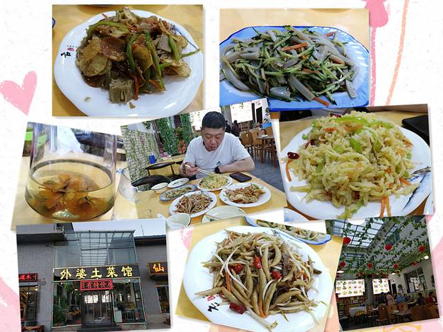 我对于旅行中不熟悉的饭馆,首先是第一感觉,觉得门店装饰中规中矩,看着干净,堂食客人多,通常是毫不犹豫的迈进。晚餐,就在广化寺后面的商业街外婆土菜馆家。店面很干净,大堂有几桌客人,点了几个特色菜:碗托、土豆片炒栲栳栳、台蘑炒面鱼鱼、炒拔烂子、 配金莲花茶。店家态度热情,上菜速度,味道适中,量不小,多点了一个菜。二个人吃的很饱,很满意。比起去年第一次来五台山,第一餐在明清街上吃的,那菜品可真是不敢恭维。现在这条街上,客栈饭馆非常多,好似是从殊像寺五爷庙搬迁过来的,多走走看看,选择性非常大。