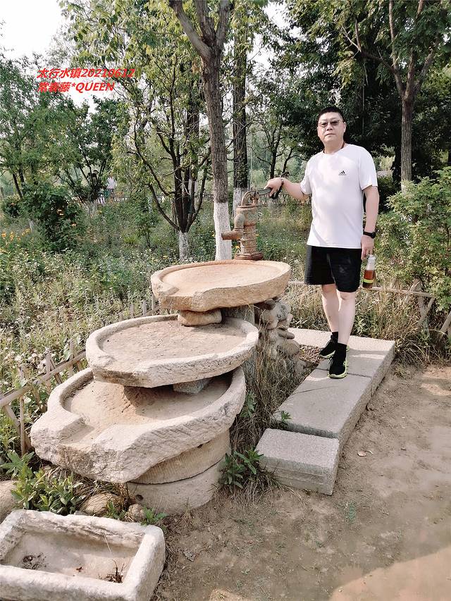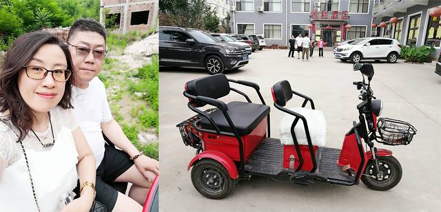 在网上搜到附近有个太行水镇可以去看看,五点多决定出门去看看,天气还是太热,步行约有十几分钟的距离,我看到院里停放的红色三轮车,本想叫爱人骑行载我去玩,老板人在忙碌中豪爽的要送我们去,坐上小三轮,突突突,眨眼功夫到了,非常好的体验。