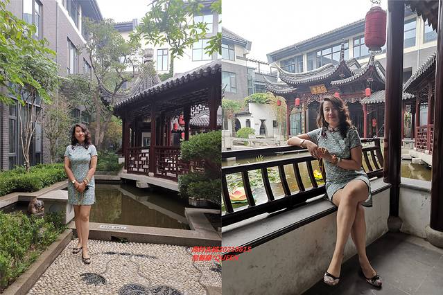 知味斋大酒店的后花园,超级喜欢。餐后,闲逛,喜欢亭台楼阁,喜欢角落几棵竹子的风韵,还有那怒放的凌霄花,配上我的小旗袍是不是很应景?