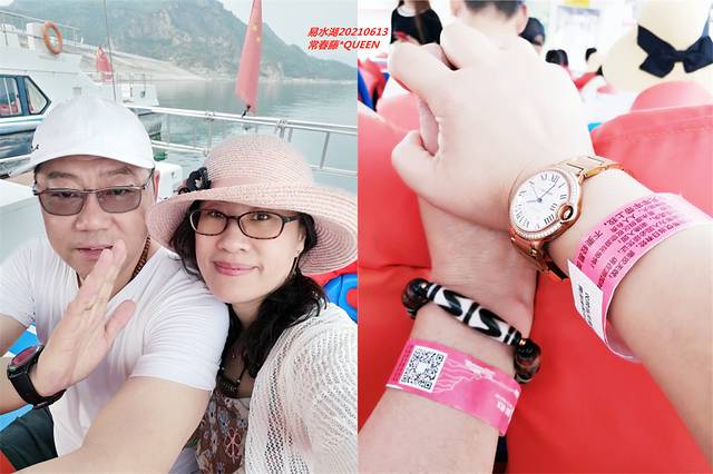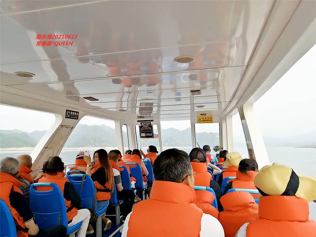早7:30第一班快艇。游客陆续登船,八点人满出发!从返程的码头上我才明白,每个人手腕的戴的纸环,三个码头不同颜色区分,像大坝码头带粉色,其它带黄色蓝色,登船无须看票,只看手腕纸环颜色,赞一个。