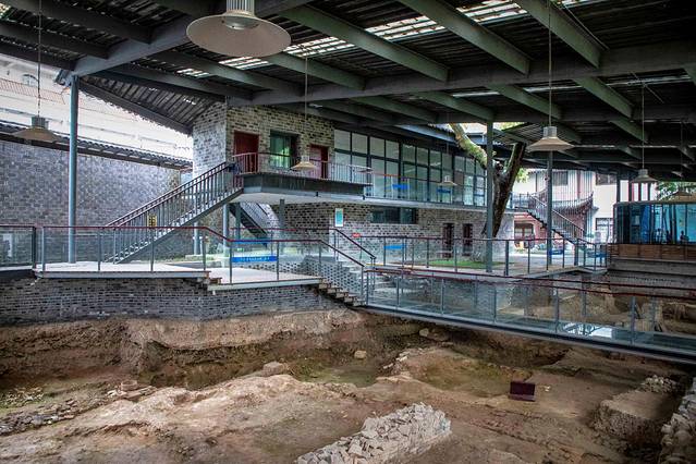 现如今的的御窑厂大致分为两个部分,窑坑遗址和室内的展览馆,包括明清时期御窑厂窑炉遗迹,墙体、道路遗迹等等。室内的展览馆因为其独特的建筑外形设计,让许多的年轻的喜欢到这里打卡拍照,它设计灵感来自于景德镇的传统柴窑,这个造型是用窑砖一点点砌成的。