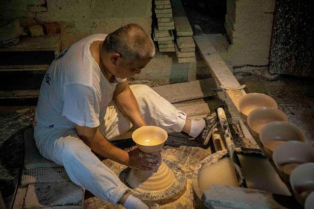 在传统手工制瓷里,据介绍一件瓷器要经历许多道复杂的工序,才能在烈火中完成从土到艺术品的凤凰涅槃。景德镇民俗博览区有一群国宝级非遗传承老艺人,他们不仅是在表演,同时也是在生产一件件精美的瓷器,向世人展示传统手工制瓷技艺。
