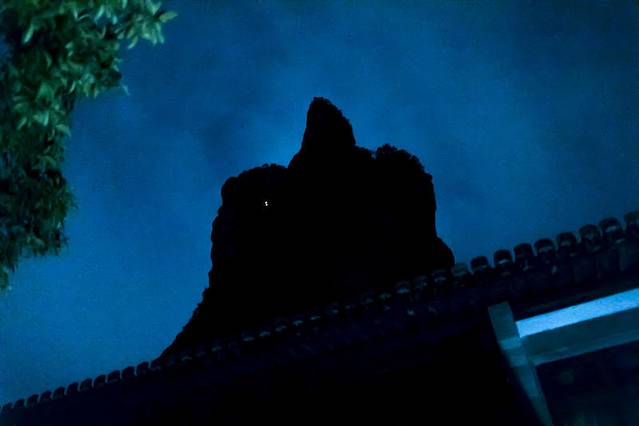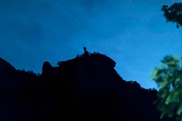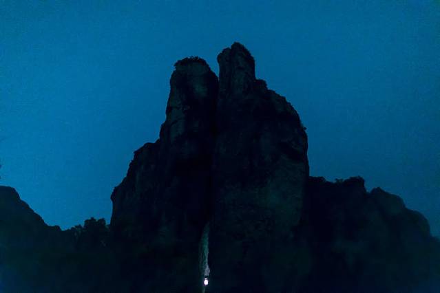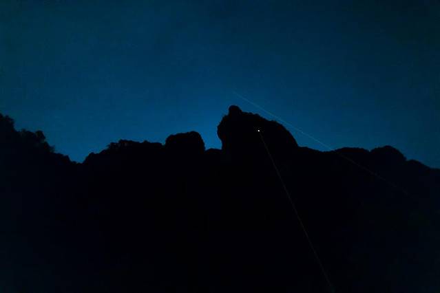 雄鹰展翅,山体在夜色中只剩下简洁的剪影,有些匪夷所思的角度下,竟然有如此奇妙的风景。