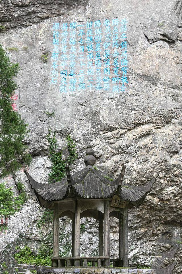 大龙湫独以其落差为190余米取胜,有“天下第一瀑”之誉。崖壁上,有“天下第一瀑”等摩崖石刻二十多处,与奇绝的自然景观相得益彰,让人流连忘返。