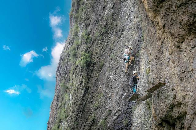 休闲体验C线:沓屏峰中间缝隙处,长度约70米,完成时间20-30分钟,中途有一个3米的钢丝桥,很适合打卡。