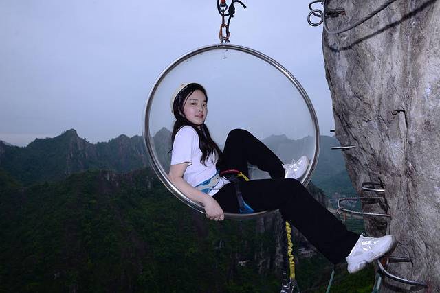 游览观光B线:长度900米,高度280米,属于水平向的线路,环绕沓屏峰一周,龙西乡美丽风光,让人心旷神怡,在线路终点悬挂了一个玻璃球椅,可以坐在椅子上大摆姿势拍照,记录自我挑战的勇气,基地里也会有专门的摄影师跟拍,配有闪光灯和无人机,惊险大片唾手可得。
