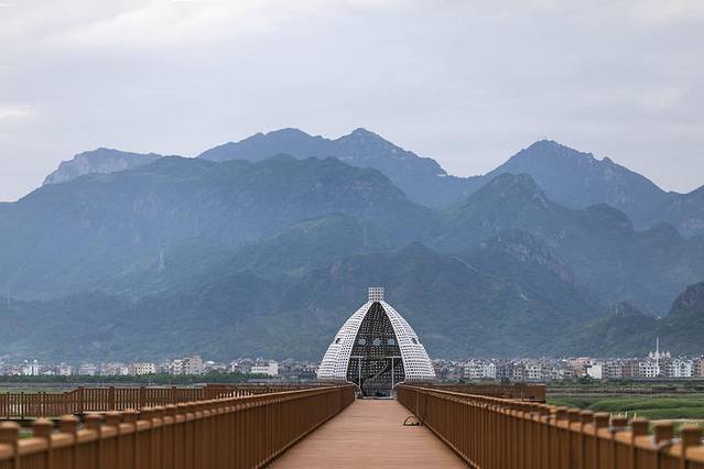 在沙门岛大桥不远处,是目前全国最北端的一片红树林,也是浙江省唯一的海岛红树林种植区,如今修建了湿地上的步行栈道,可以深入到湿地深处,欣赏落日余晖。