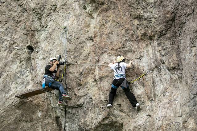 极限挑战A线:长度400米,高290米,垂直落差100米,三条钢索桥,属于垂直向线路,对臂力的要求极高,攀爬时间约2小时