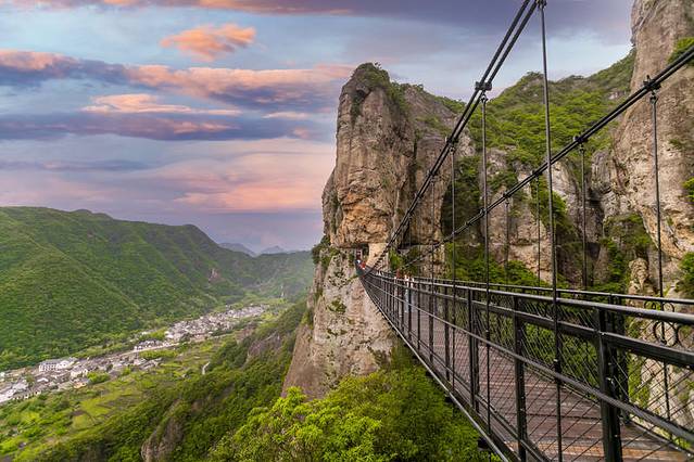 一条步行栈道,悬挂于悬崖峭壁,清晨可以在这里遇见日出云海,方洞寺,铁索都是拍照打卡地。