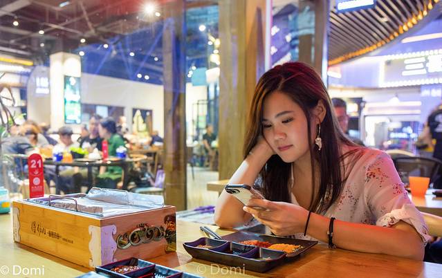 沿着街道一直向里走,红灯高挂,旌旗飘摇,小桥流水,亭台掩映,不断的人群插肩而过,不断有cospaly装扮的爱好者闯入镜头,这是一个时尚与历史并存的街道,也是不同于一些古镇的地方。