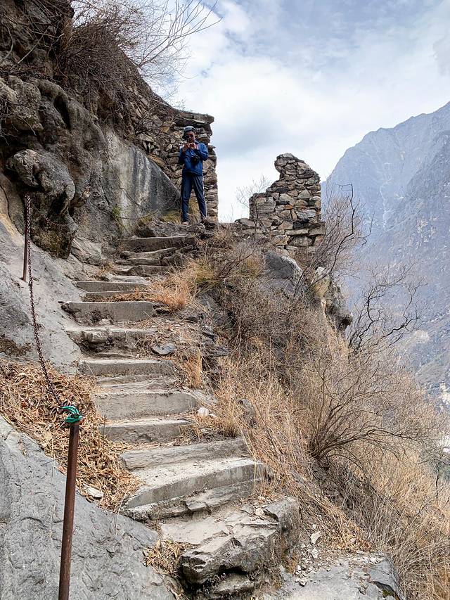 我们才走了一半的路程,吉克就来电话说前面的路已经通了。这时我们遇到了从下面上来的游客,咨询后得知如果想去最下面看虎跳峡,至少需要一个小时的时间,于是我就放弃了继续向下,选择了折返。