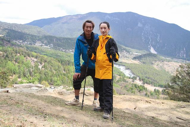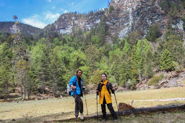 行至一片开阔地,我提出在此拍照留念,主要也想休息一下。小刘给我和吉克拍了合影。