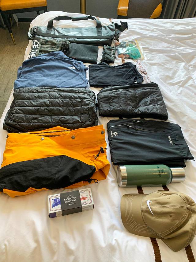 作为一名从来不参与户外运动的小白,本次行程所需的装备我全都没有,大到冲锋衣、小到登山袜,每一件雪山装备都是新购置的。在朋友的建议下,一开始考虑的品牌是始祖鸟,测算了一下至少需要2万+的预算。假如这次登完之后发现自己的身体不适合高海拔运动,那所有装备就都成一次性的了,仔细考虑后,不再追求顶级配置,但所有单品都尽可能选择了比较好的。最终花了一万多元完成了从里到外、从上到下的个人装备采购,技术装备由登山公司提供。