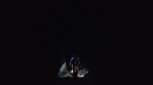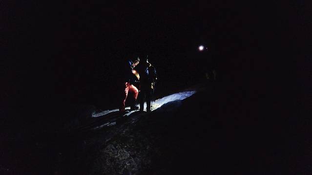 凌晨两点起床,我在前一天的衣物中增加了羽绒内胆和羽绒裤,结果非常郁闷的发现羽绒裤买小了,穿在腿上根本无法弯曲,无奈只能脱下,下身仅穿了排汗长裤和冲锋裤,没有保暖层,后来想想还是有点危险的。