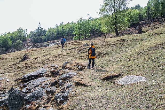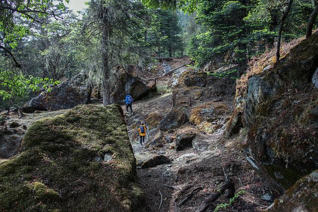 午餐后,交通依然没有通畅,我和餐厅里的几位游客不想坐在这里浪费时间干等,于是决定一起去爬一爬附近的小山坡,正好我也为后面的攀登进行适应性训练。(PS,下图小刘出镜)